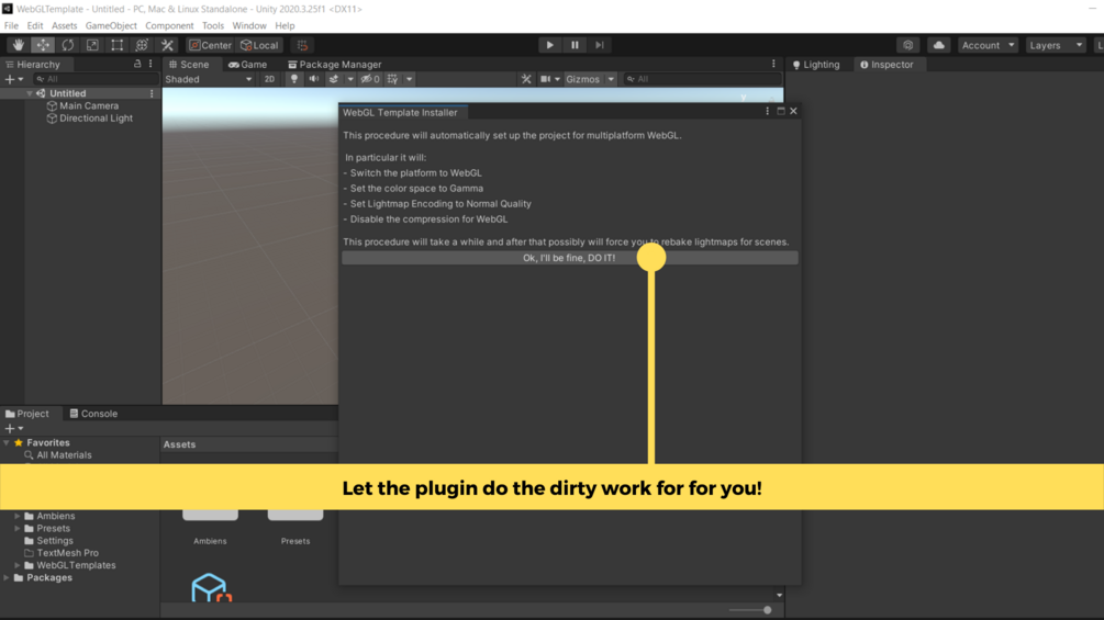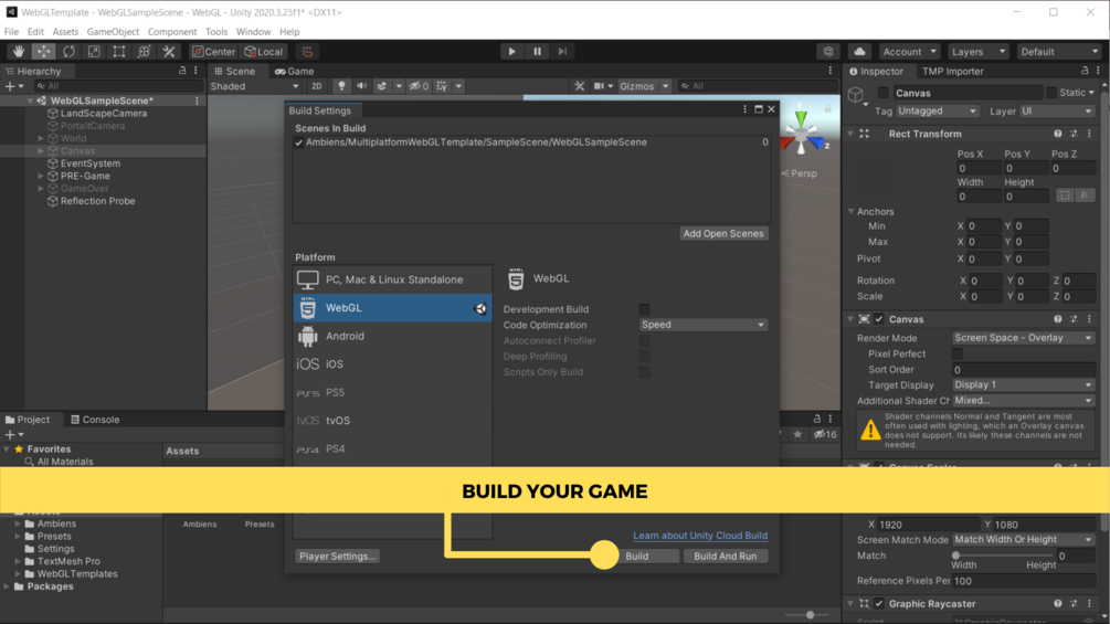 - a series of Unity In-Editor scripts that will allow you to easily set all project options needed to export a truly multiplatform WebGL app.